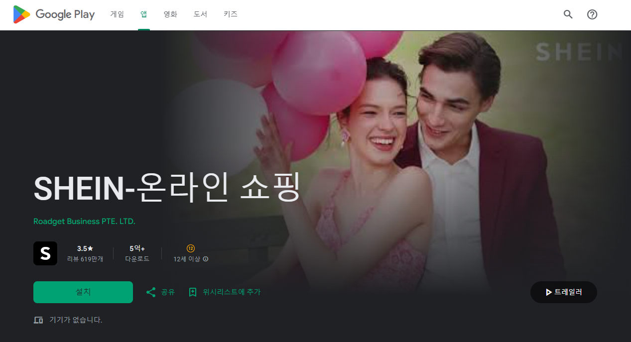 플레이스토어 검색창에 "쉬인"을 검색하시면 아래와 같은 화면이 나오는데요. 검색이 귀찮으신 분들을 위해서 위에 다운로드 버튼을 가지고 왔습니다.
