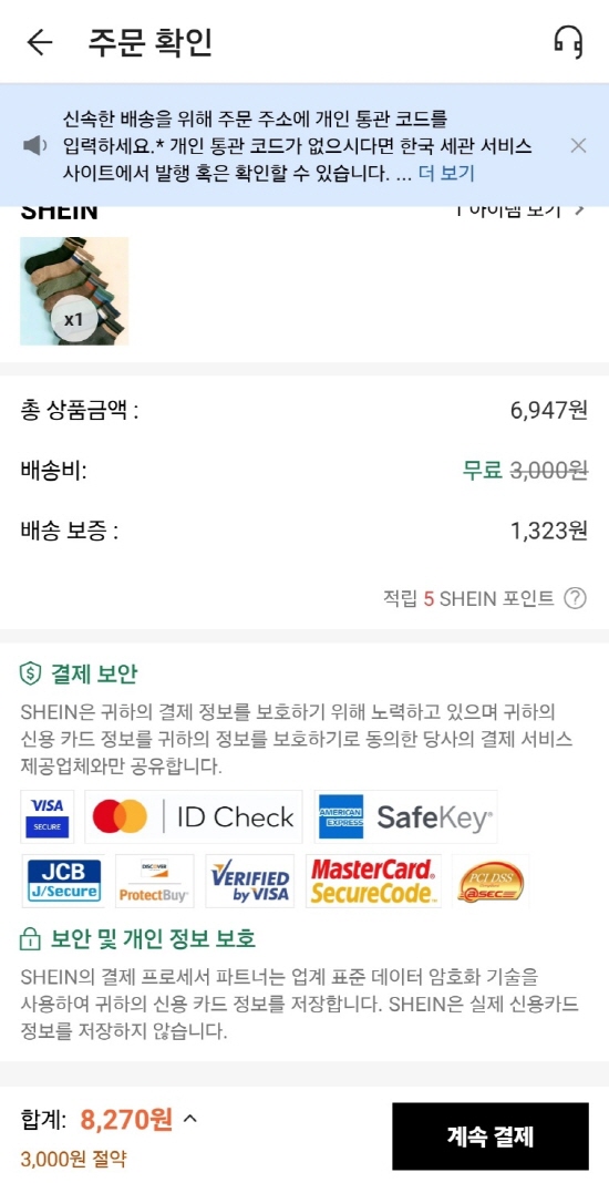 쉬인쇼핑(asia.shein.com) 결제설정방법