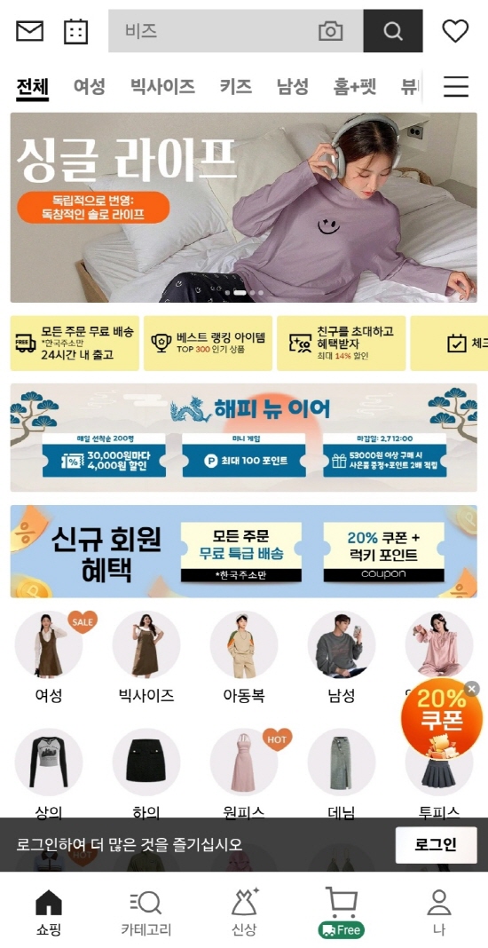 로그인이 완료되면 이제부터 당신의 사랑하는 모든 것을 손끝으로 쇼핑을 즐기시면 됩니다.