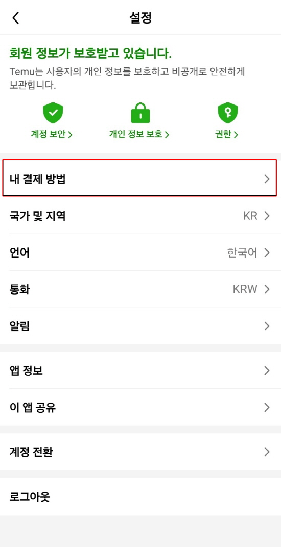 테무(temu.com) 결제설정방법
